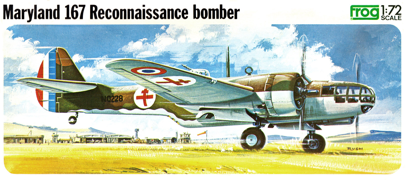 На завершающей стадии выпуска модель паковалась в коробки типа Н1 и Н2 с измененным бокс-артом и коробочным названием “Martin 167 Reconnaissance Bomber”. Дело было в том, что для издания 1973 года Rush изобразил бомбардировщик авиации Свободной Франции, отбивающийся от атаки немецкого истребителя, подозрительно напоминающего FW-190A. Поскольку “свободные французы” летали на “Maryland” в Северной Африке только в 1941-1942 гг., вопрос о наличии в этот период “фокке-вульфов» был весьма однозначно отрицательным. Неточность была исправлена – теперь бомбардировщик был изображен взлетающим с аэродрома. Как и для предыдущего варианта, декаль и схема окраски предполагали два варианта исполнения: