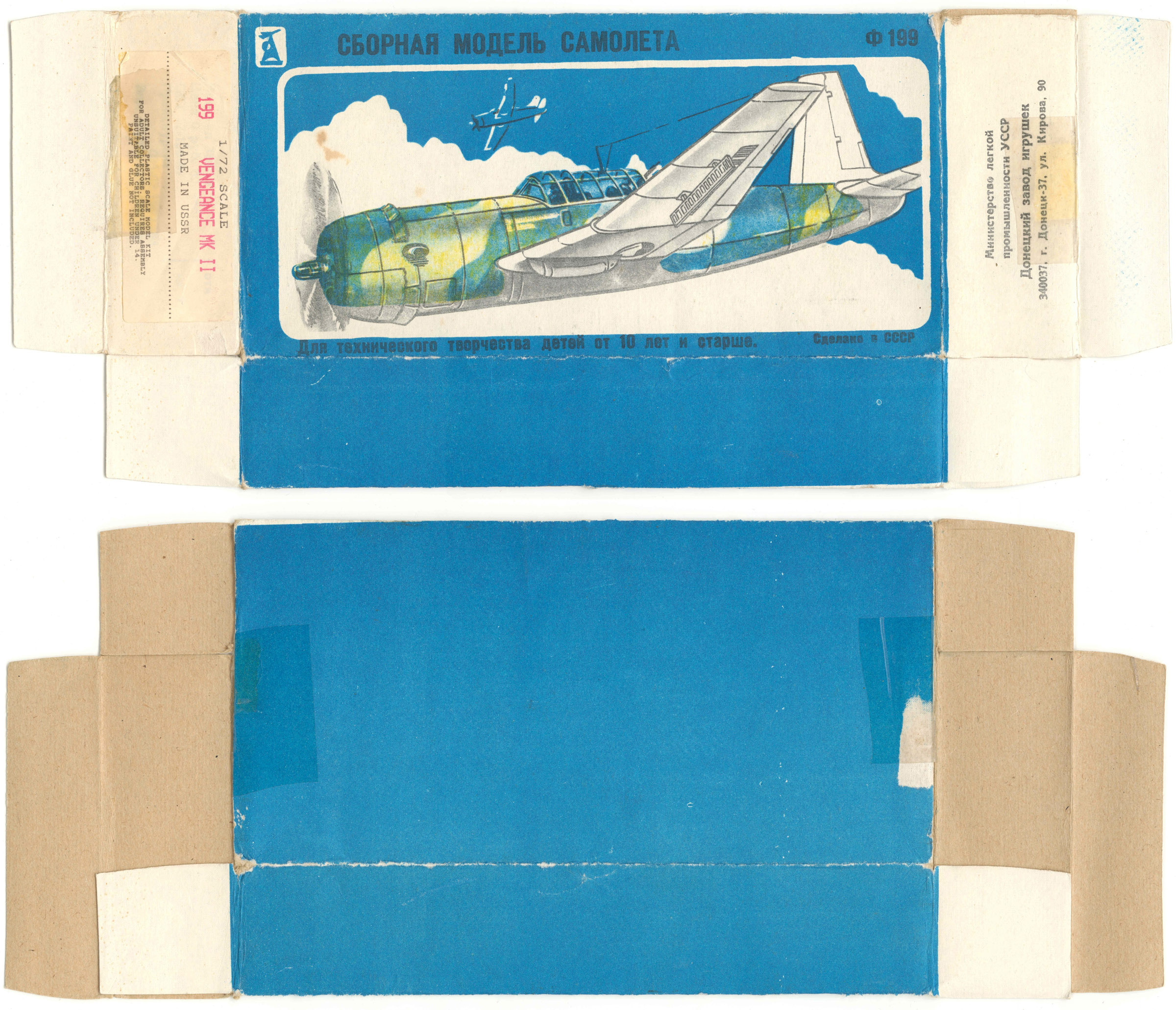 Между тем, производство было развернуто слишком поздно, поэтому на экспорт модель “Vultee Vengeance Mk.II Dive Bomber” если и была поставлена, то в очень скромных количествах. Не исключено, что британская сторона успела получить только промо-отливки, поэтому найти “настоящий нововский комплект” сейчас будет крайне затруднительно даже в самой Великобритании. Между тем, по заказу “Novo Toys Limited” была напечатана огромная партия полиграфии, которая после ликвидации этой фирмы в конце 1980-го года была передана Советскому Союзу и впоследствии частично использована для комплектации моделей советского выпуска.